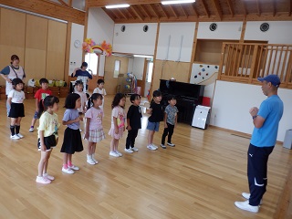 今日は、ぞう組さんと第一幼稚園の年長組さんでマリソル運動教室に参加しました