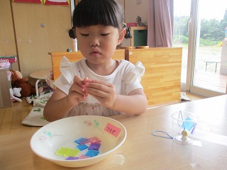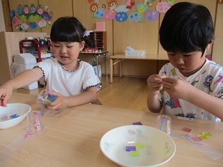 りす組さんとうさぎ組さんは、風鈴を作りました
