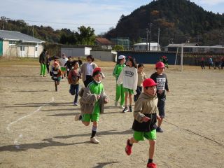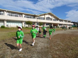児童の皆さん、走ると体が鍛えられますし、かぜもひ