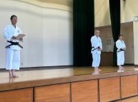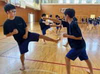 1.2年生の保健体育の授業で講師をお招きし、「少林寺拳法」を学びました。あいさつや着座、技能面