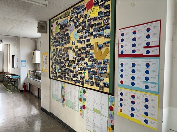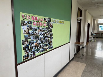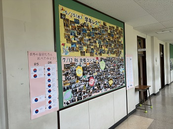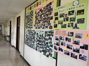 2学年の廊下には今まで学年で取り組んでいたことがこのような形で