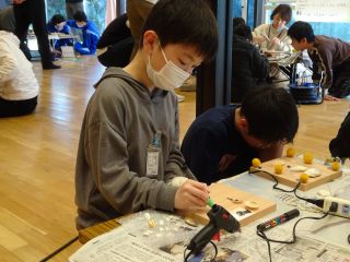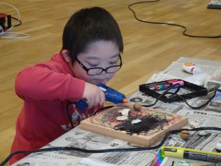 学校で事前にグルーガン(ホットボンド)の学習をし