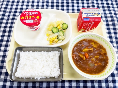 カレーとごはんはもちろん、サラダやヨーグルト、牛乳もバランス良く食べて、午後からも元気に活動できるようにしましょう。