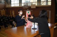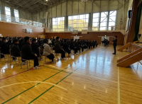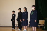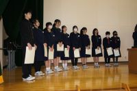 終業式は、校長式辞に始まり、各学年、生徒会代表から2学期の振り返りと3学期に頑張りたいことが堂々と発表されました。2学期は運動面、文化面ともに多くの生徒が表彰され、生徒の頑張りを評価していただきうれしい限りです。冬休みは充実した日々を過ごし、3学期も笑顔で会えることを期待しています。