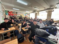 本日、2学期終業式を行いました。朝から生徒会がさわやかな笑顔で「挨拶運動」を行い、生徒たちを迎えました。