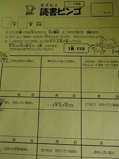 低学年用の「読書ビンゴ」カードです。