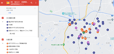 PTAの皆様が学区内の危険箇所を巡回・点検してくださり、写真を添えて分かりやすく示してくださいました。その記録を地図上に表示し、ホームページ上で公開いたします。今後とも、子供たちに命を大切にして生活することを声掛けしていただきますようお願いいたします。