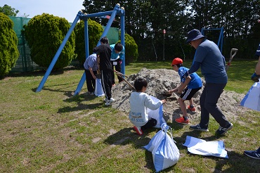 運動会に向けて、5・6年生と一緒に会場準備を行いました。