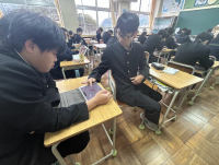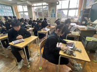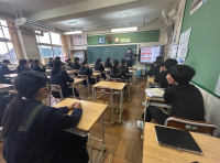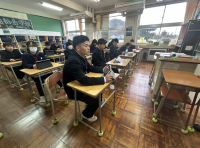 朝活動の時間に、全校で「後発地震への対応」について確認する時間を設定しました。