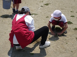 あさっての運動会に向けて,高学年のお兄さんとお姉さんたちが校庭の草取りをしました!!