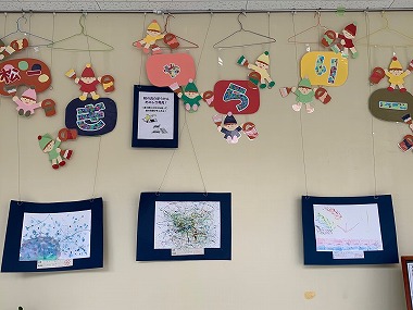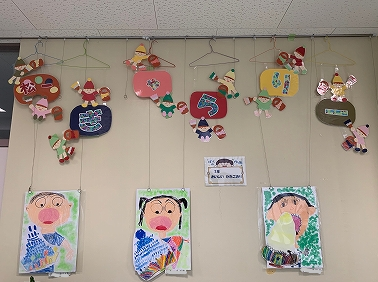 定期的に入れ替えて,玄関に児童の作品を展示しています。