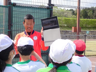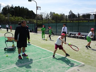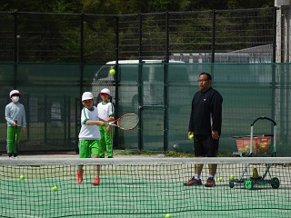 児童全員が初めてのテニスだったのでラケットの持ち方