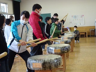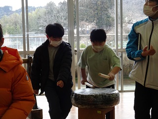 7日(木)5年生から4年生へ太鼓の引継ぎを行いました。
