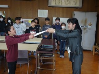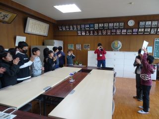 朝会で表彰を受ける児童が欠席した時は、後日校長室で表彰を行います。