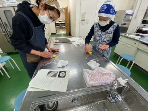 12月24日(水)、ゆあさよしこ講師による「和菓子教室」で、練り切りの3種とミニシュトーレン(米粉を使って)を作りました。みなさん、なかなかの出来映えに仕上がりました。食べてしまうのがもったいないです。