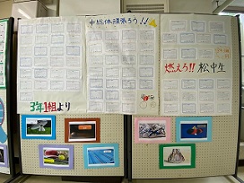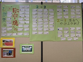 いくつもの困難を乗り越えてきた松中生。1分1秒を大切に刻み,3日後の大会へ挑みます。廊下には,一人一人が書いた「意気込み」と「応援メッセージ」が掲示されました。