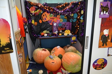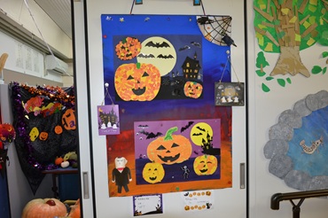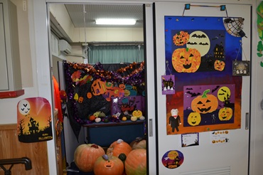 学校ではハロウィーンのスペースがあります。