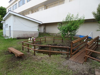 ▲小さなお友達も池の中を見やすいようにとちょっとした台も作っていただきました!!