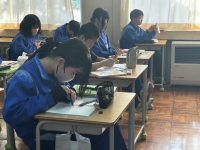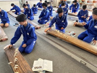 数学では、コンパスを使用して図形を丁寧に描いていました。音楽では、初めて琴に触れる時間となり、姿勢を正して緊張しながら練習に取り組みました。技術では、2学期から取り組んでいた本棚づくりも組み立ての時間となり、仕上げを慎重に行っていました。どの授業にも集中して取り組む様子が見られました。