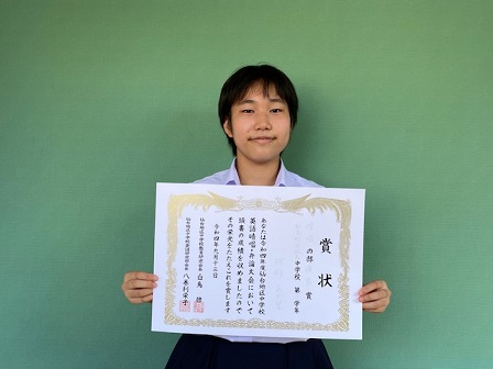 本日、岩沼市民会館にて「仙台地区中学校英語暗唱・弁論大会」が行われました。本校からは、2名が参加し、優良賞を受賞しました。おめでとうございます。