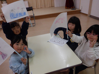 その後はみんなで旗作りをしました