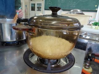 5年生は家庭科「ご飯とみそ汁」の調理実習で衣吹さ