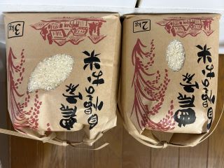 秋に収穫した「ササイブキ」5kgが学校に寄贈されました。