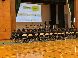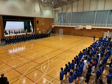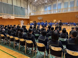 今日は午後から「新入生歓迎会」が行われました。 2、3年生が春休み中から準備してきた歓迎会です。 生徒会執行部が中心になり歓迎会を運営しました。 ①生徒会組織や実行委員会についての説明 ②委員会活動の説明です。 今年から生徒会でも会の要綱等も電子化され、 1年生もタブレットを持参しての参加です。 各部工夫を凝らした紹介がありました。  最後に全校で大きな声で校歌を歌い とても良い雰囲気で会が終わりました。 とても良いスタートが切れている松島中学校です。 |