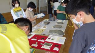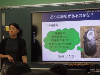 昔の瓦や五輪塔を手に触れながら見ることができまし