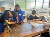 すばる学級では、技術の授業で自分たちが育てた米の脱穀作業を協力して行いました。また、作業や美術の授業では、