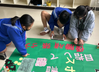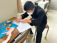 正面玄関に飾るウエルカムボード作りに取り組んでいます。月ごとにメッセージを工夫し、季節に合った飾りを手作りで丁寧に製作し展示しています。