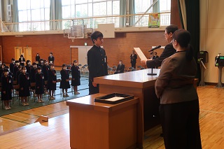 新型コロナウイルス感染対策のために規模を縮小して,修了式を行いました。