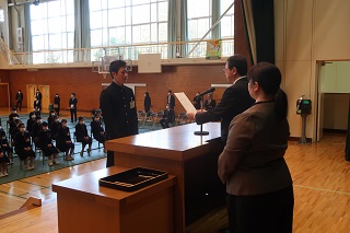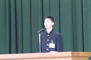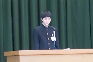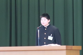 各学年代表に修了証が授与された後,校長式辞があり,各学年代表と生徒会代表の言葉がありました。