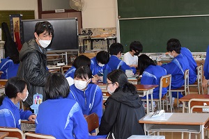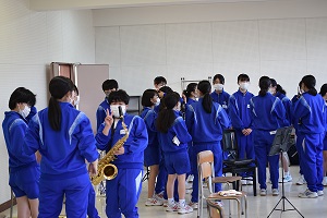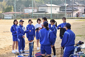 部活動ミーティングを終え,1年生は所属した部活動に向かい活動しました。先輩方が優しく教えながら共に時間を過ごしました。吹奏楽部に入部した1年生は,「新入生歓歓迎会の先輩の演奏に憧れました」「どの曲も迫力があって素敵でした」と入部の理由を語ってくれました。聞くところによると,本格的な楽器演奏は初めてとのこと。憧れの先輩方に近づきたいと決心した表情が印象的でした。今日は,ソフトボール部,ソフトテニス部,美術部,吹奏楽部を訪問しました。