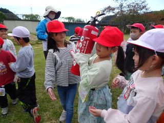 1年生が実際の消火器を持ってみると、1年生にとっ