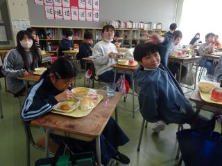 22日(水)に5年生が見学した松島イノベーションヒルズの様子がテレビ放送されました。その放映を給食の時間に全学年で視聴しました。