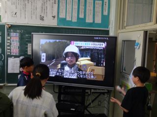 5年生教室では自分たちが映し出されたニュースに