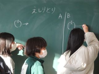 黒板に絵をかくのは楽しいです。みんなしっかり並ん