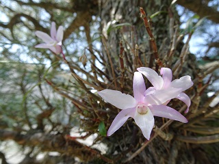 学校に咲いているセッコクがちょうど見頃を迎えています。