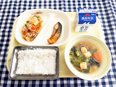 今日の地場産物は、松島産ごはん、松島産だいこん、松島産ねぎ、豚肉、牛乳です。