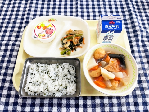 たんぱく質たっぷりのかまぼこやがんもどき、ビタミンたっぷりのだいこん、にんじん、カルシウムや食物せんいたっぷりで良いだしも出る昆布などが入った栄養満点の料理ですので、よく味わって食べましょう。
