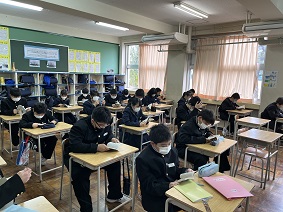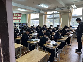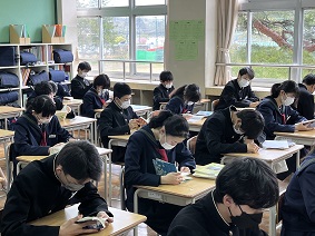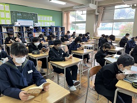 朝読書では、教室で生徒、担任が心穏やかに自分で選書した本を読んでいます。