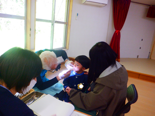 歯科医の先生とお家の方で子どもたちの歯の様子を