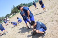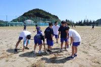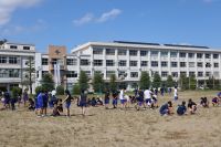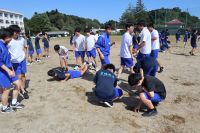 運動会では、赤組 対 青組に分かれ、各競技で勝利を目指して戦いますが、今回の除草作業も各組に分かれ、除草した量を競いながら取り組んでいます。生徒たちは、雑草のない校庭で気持ちよく運動会を実施できるように一生懸命頑張っています。