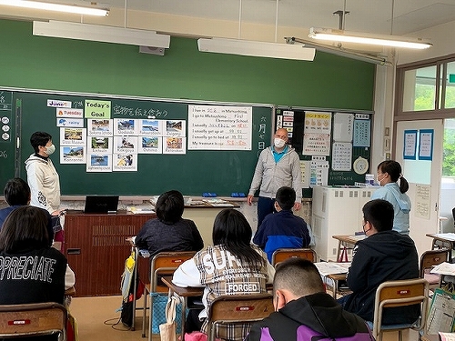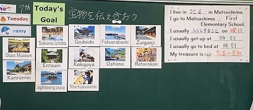 今年度から文科省の教育課程特区に指定された「子ども国際観光科」,6年生の授業風景。英語の活動の中で,松島のことを取り入れながら進めています。例文にあてはめながら,お友達が発表していました!