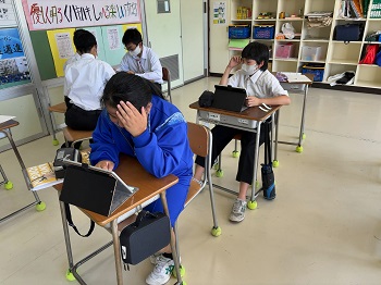 タブレット端末を活用して、学習に取り組んでいる様子です。