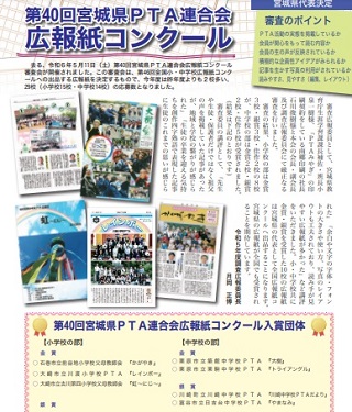 松二小PTA広報紙がコンクールで佳作に輝いたことを8月5日のホームページでお知らせをしましたが「PTAみやぎ」にも掲載されました。