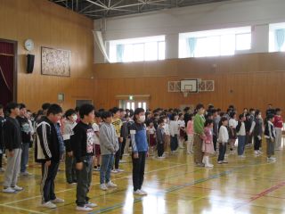 今年度1回目のお話朝会が行われ、校長先生から今年度の松島第一小学校のめあてなどについてのお話を聞きました。