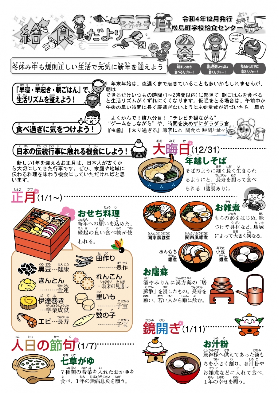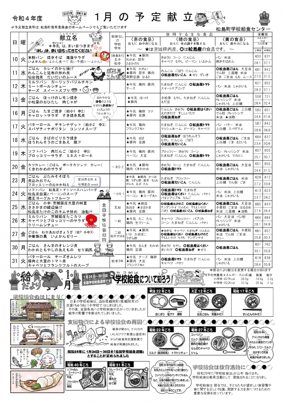松島町学校給食センターでは、「今日の給食」や毎月の「予定献立表」、「一口メモ」などを発信しております。
