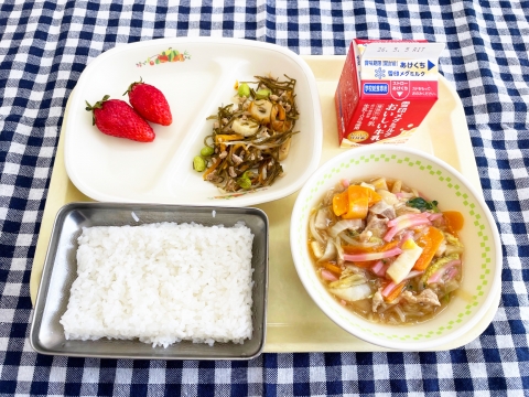 【松島町産食材】松島産ごはん、松島産いちご(小学校)